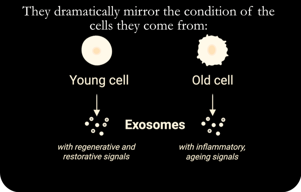 Thanks to their nano-sized structure and lipid membrane, stem cell–derived exosomes can penetrate deeply into the dermal layers, reaching the cells responsible for repair and regeneration. Once there, they deliver key molecular signals — including growth factors, peptides, and microRNAs — that activate regeneration, boost hydration, and restore cellular communication.